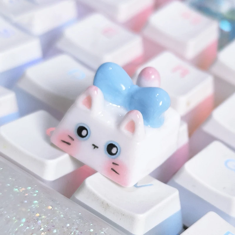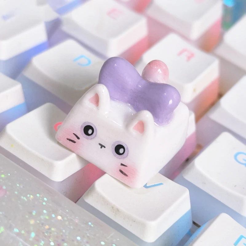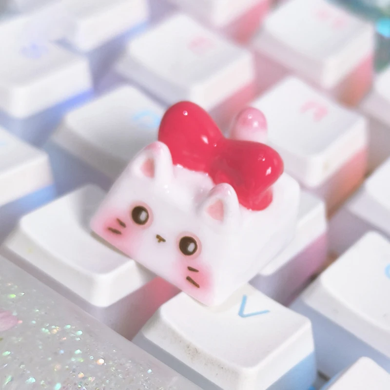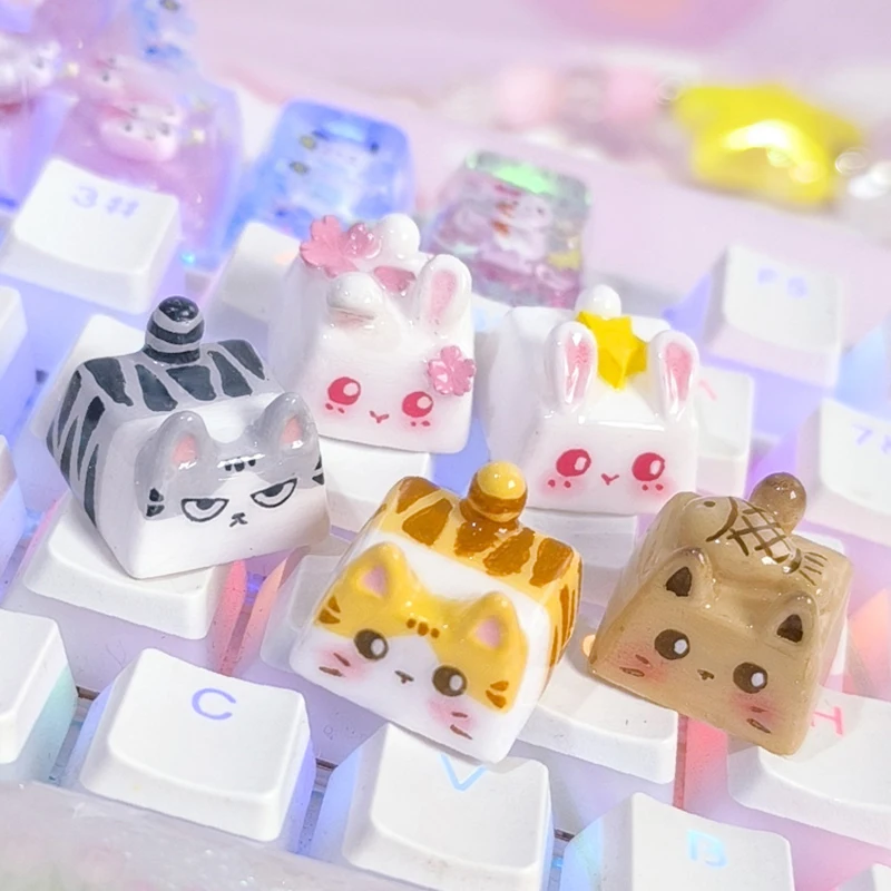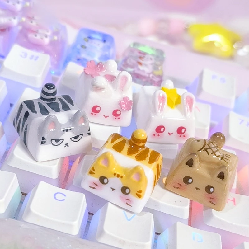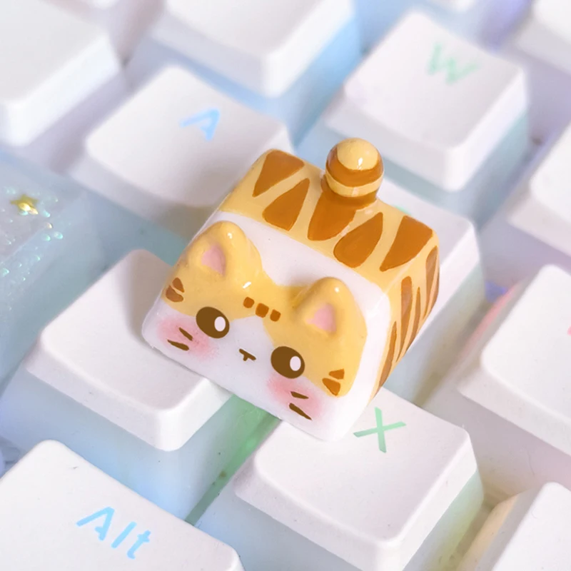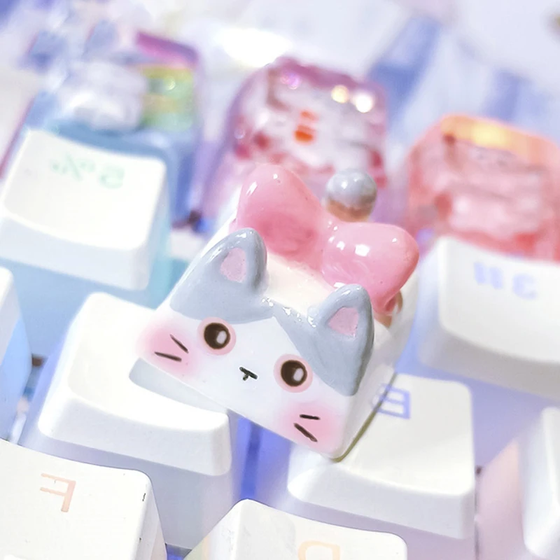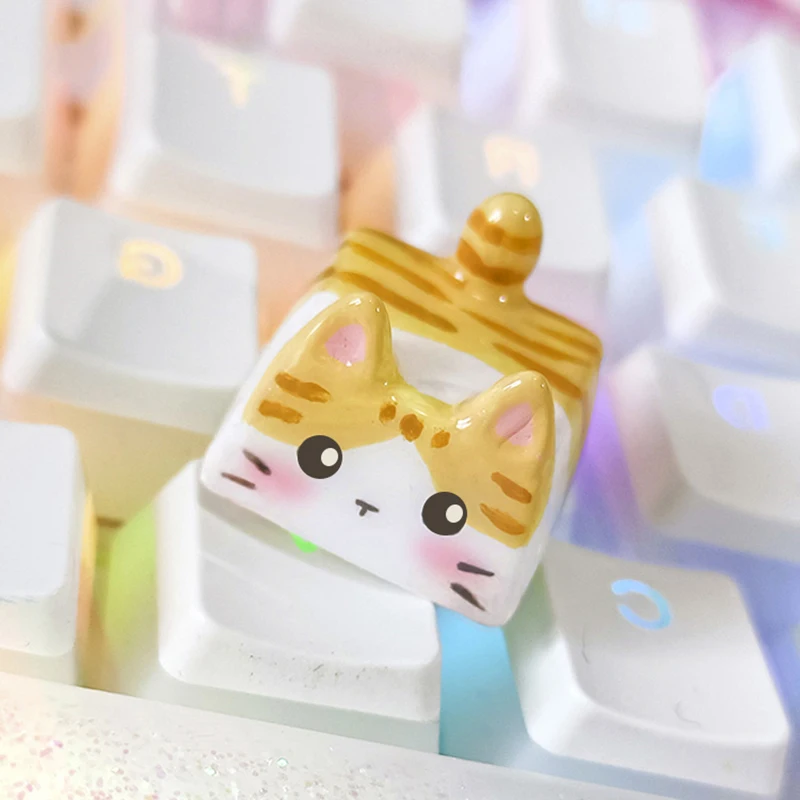 Kawaii Cat Keycap Original 3D Resin Keyboard Caps Custom Handmade Gaming Artistic Keycaps For Mechanical Keyboards Gift