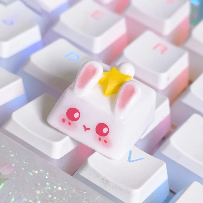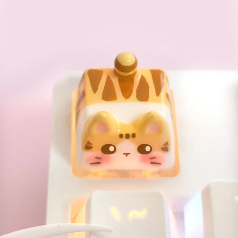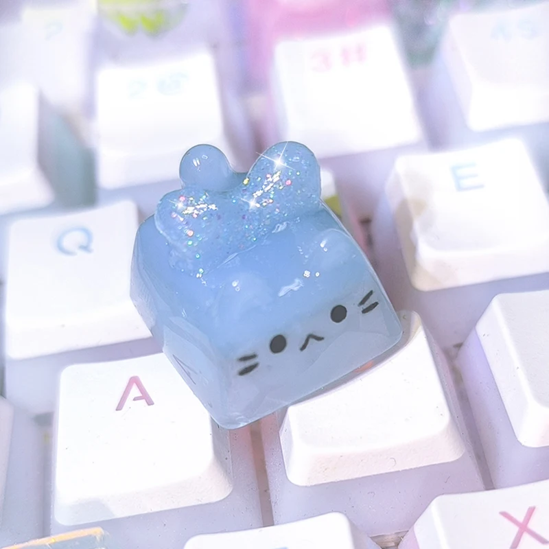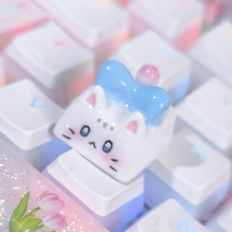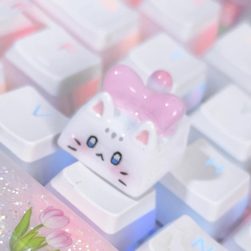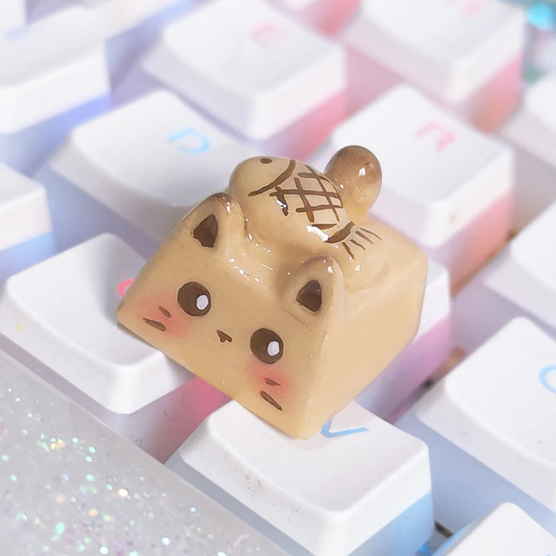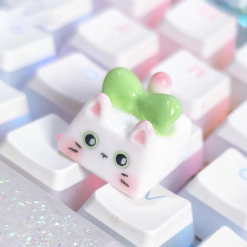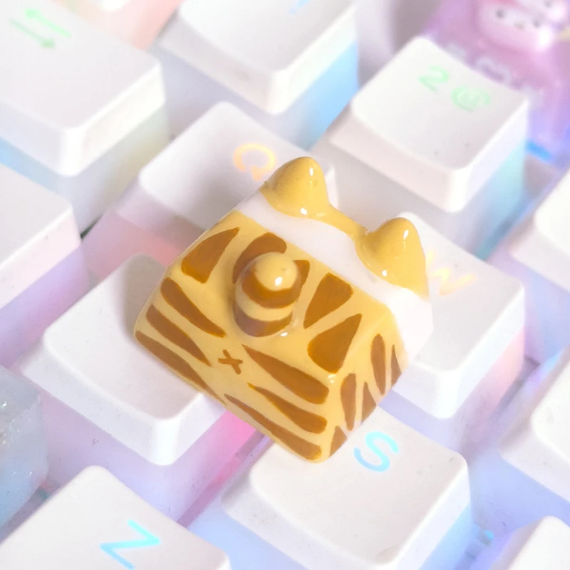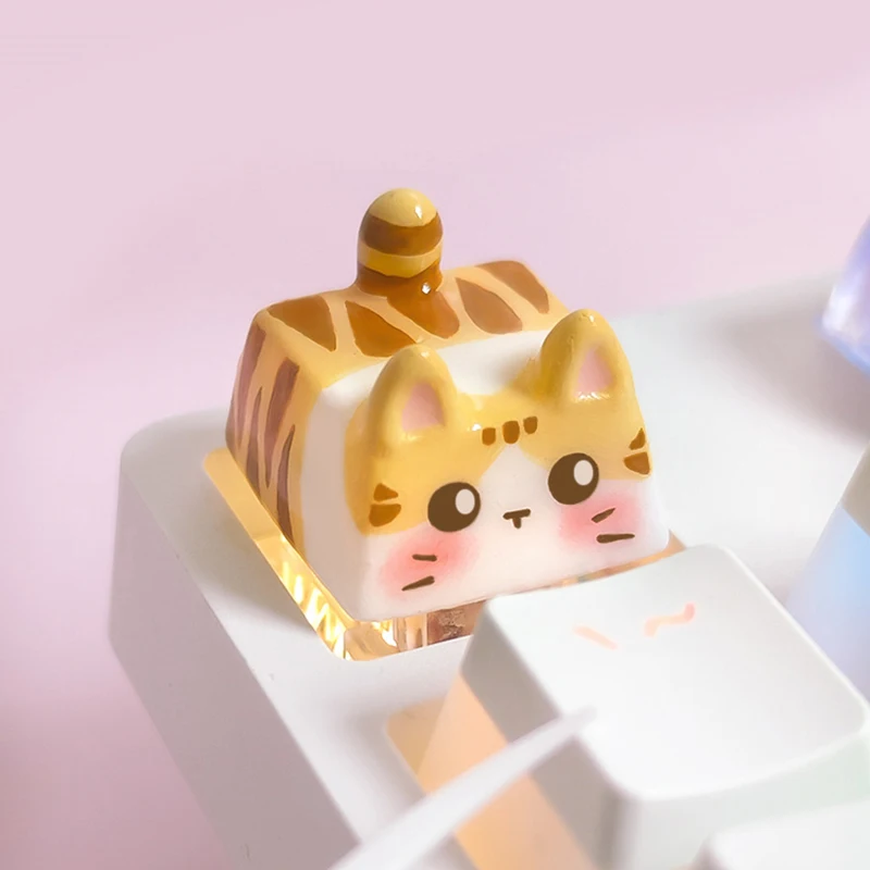 Kawaii Cat Keycap Original 3D Resin Keyboard Caps Custom Handmade Gaming Artistic Keycaps For Mechanical Keyboards Gift