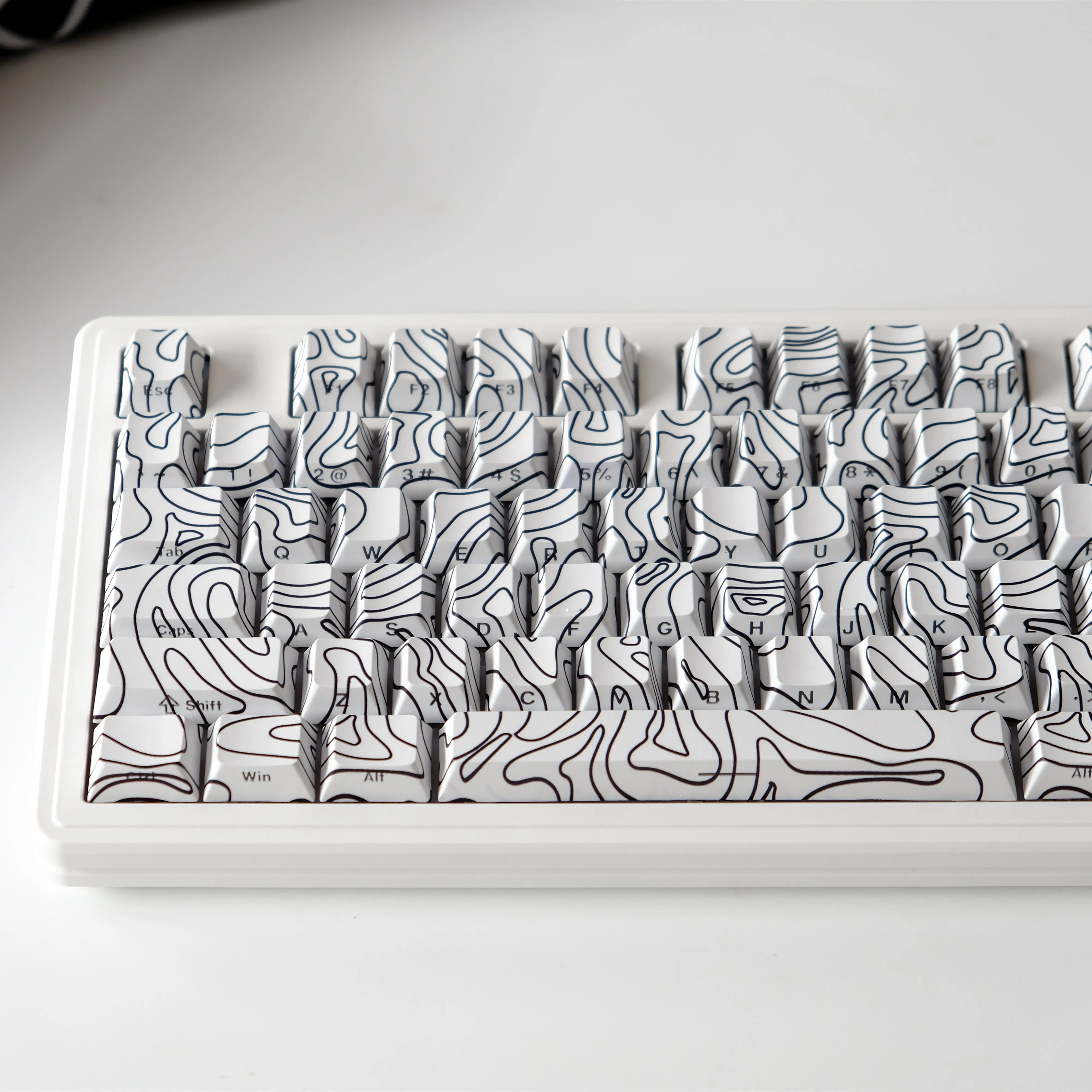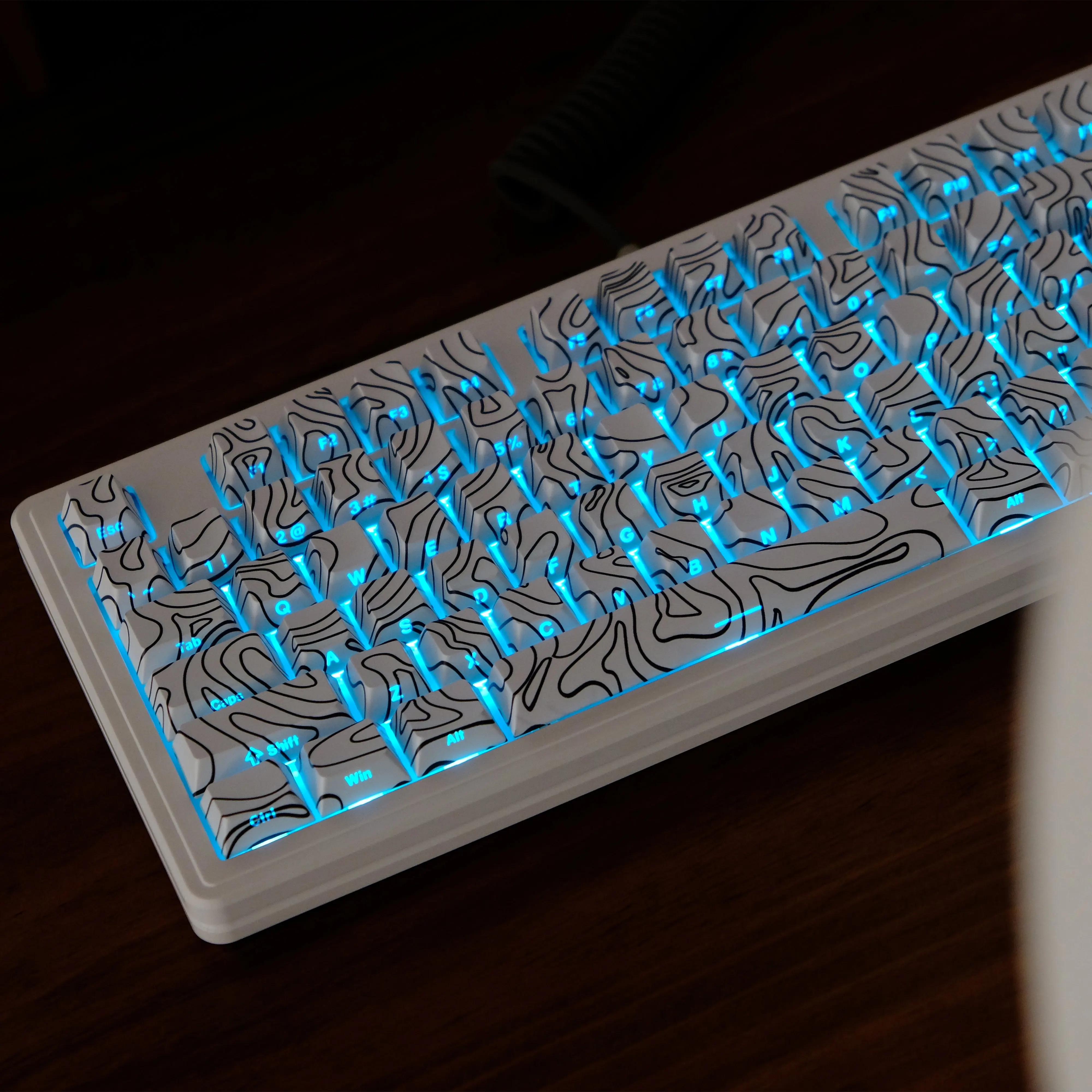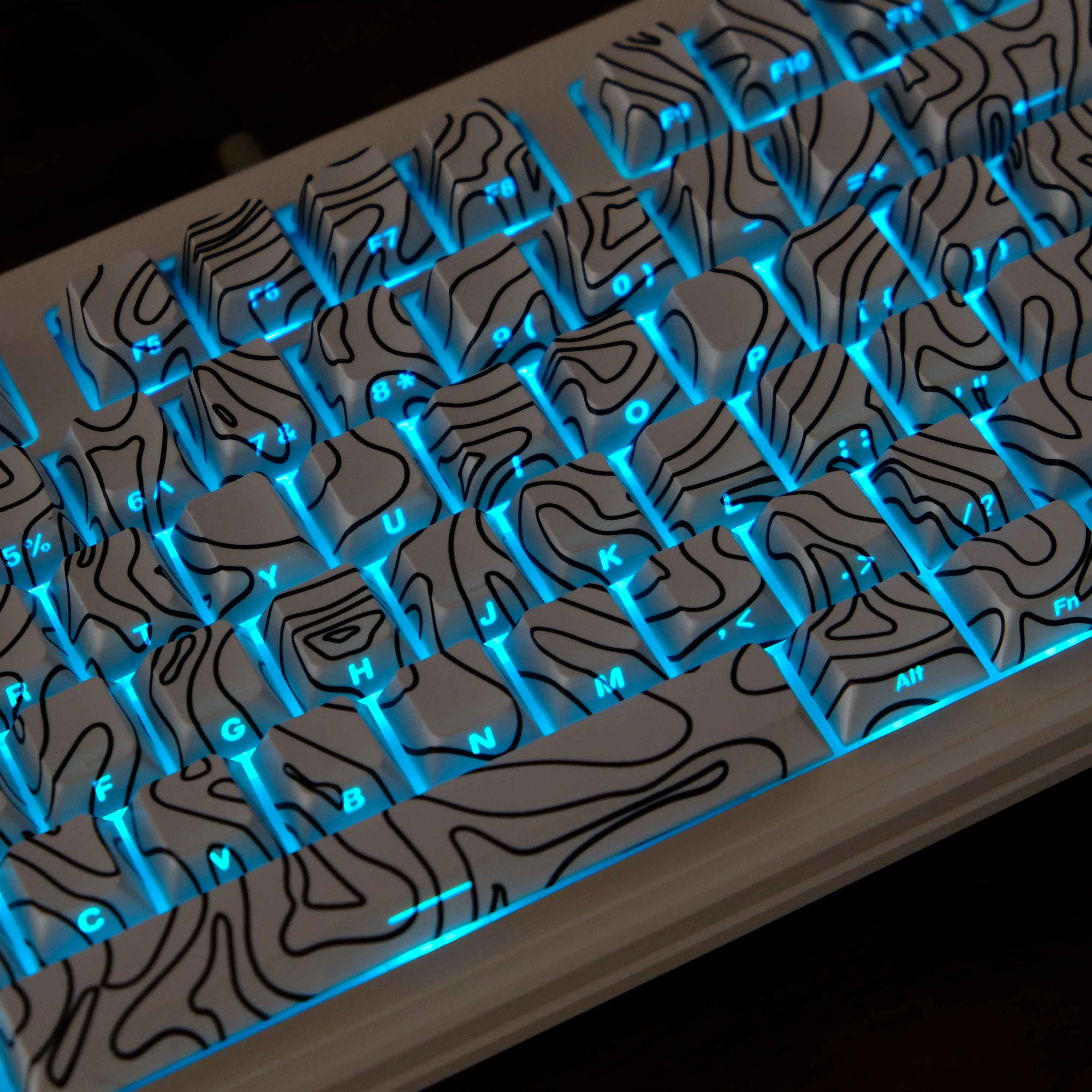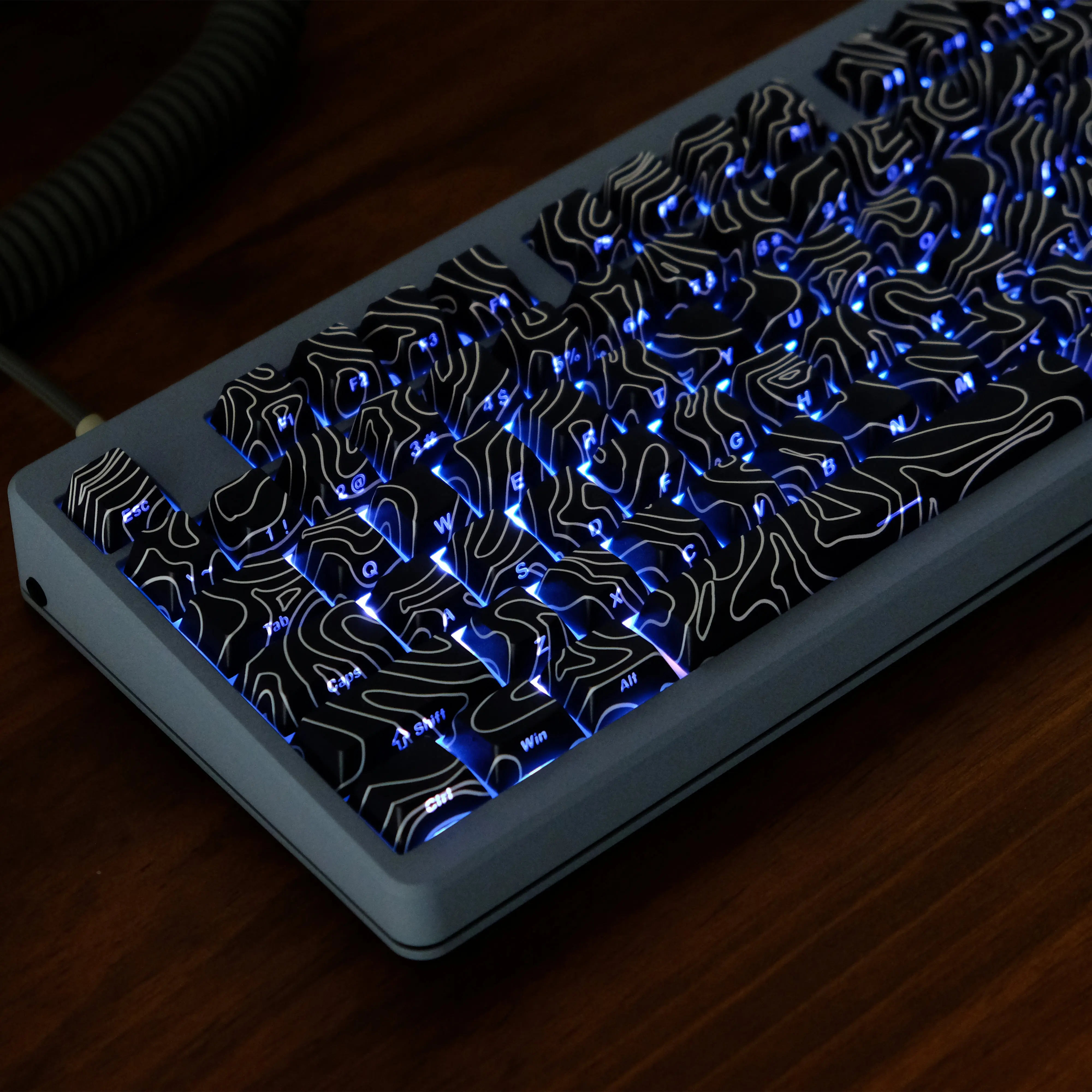 Topographic Keycaps PBT Cherry Profile Side Print Keycaps Backlit Contour ISO Layout Big Set Keycaps For Mechanical Keyboard